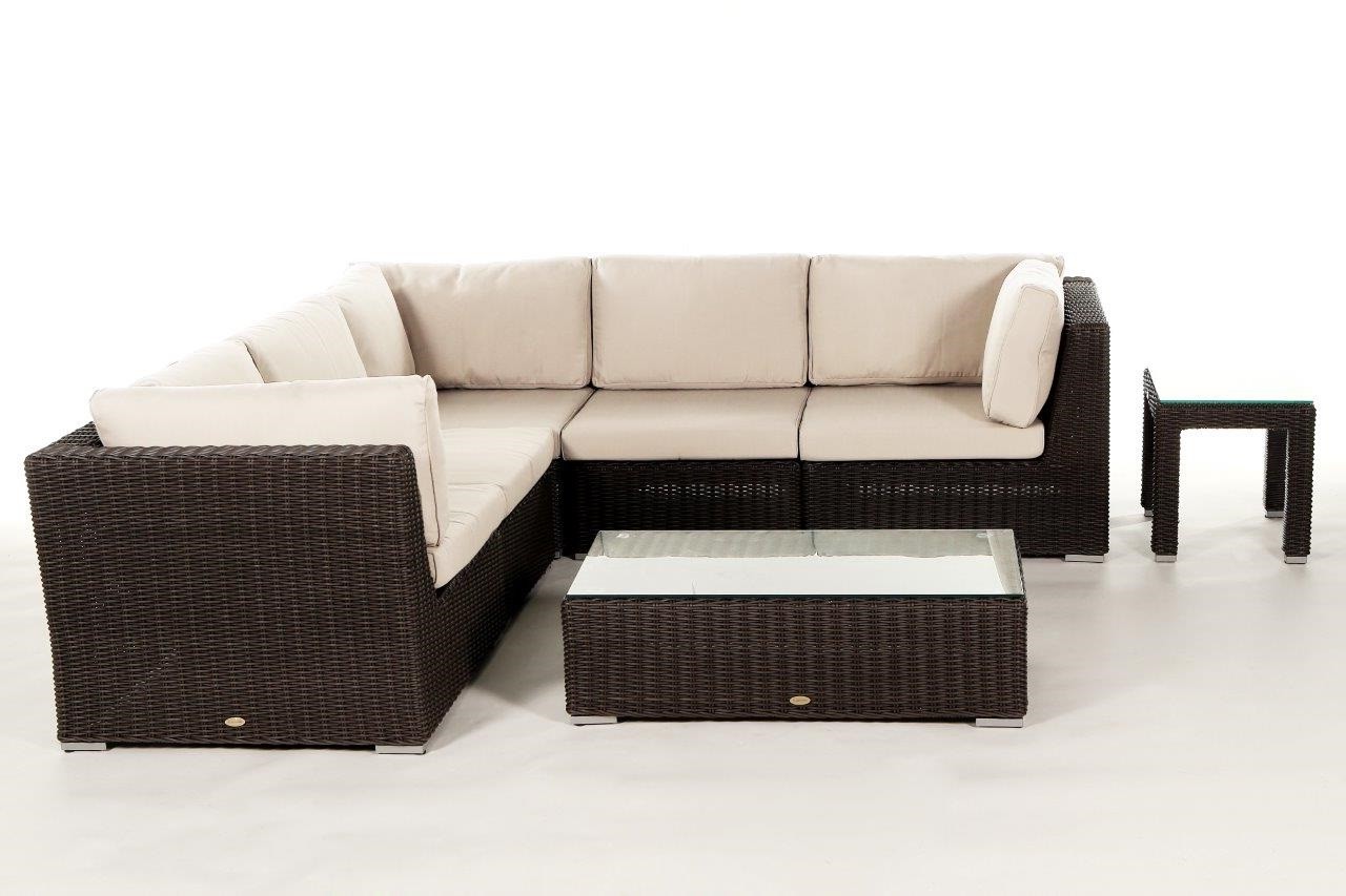Sommertage verbringt man am besten draußen in einer gemütlichen Rattan Lounge. Das braune Kunststoffgeflecht ist abgerundet und nicht flach wie bei den meisten Loungemöbeln. Auch die Polsterung der Denver Lounge ist sehr bequem, die Rückenpolster sind besonders weich und haben eine große Anlehnefläche. Dank der individuell zusammenstellbaren Elemente bietet dieses Rattanmöbel viel Gestaltungsfreiheit. Das Grundpolster ist sandbraun. Die Stoffbezüge sind abziehbar und waschbar. Gesamtgröße unserer Rattan Lounge Kombination: 250 cm x 250 cm. Zu diesem Lounge-Set schenken wir Ihnen: 3 sandbraune Zierkissen im Wert von CHF 87.-.